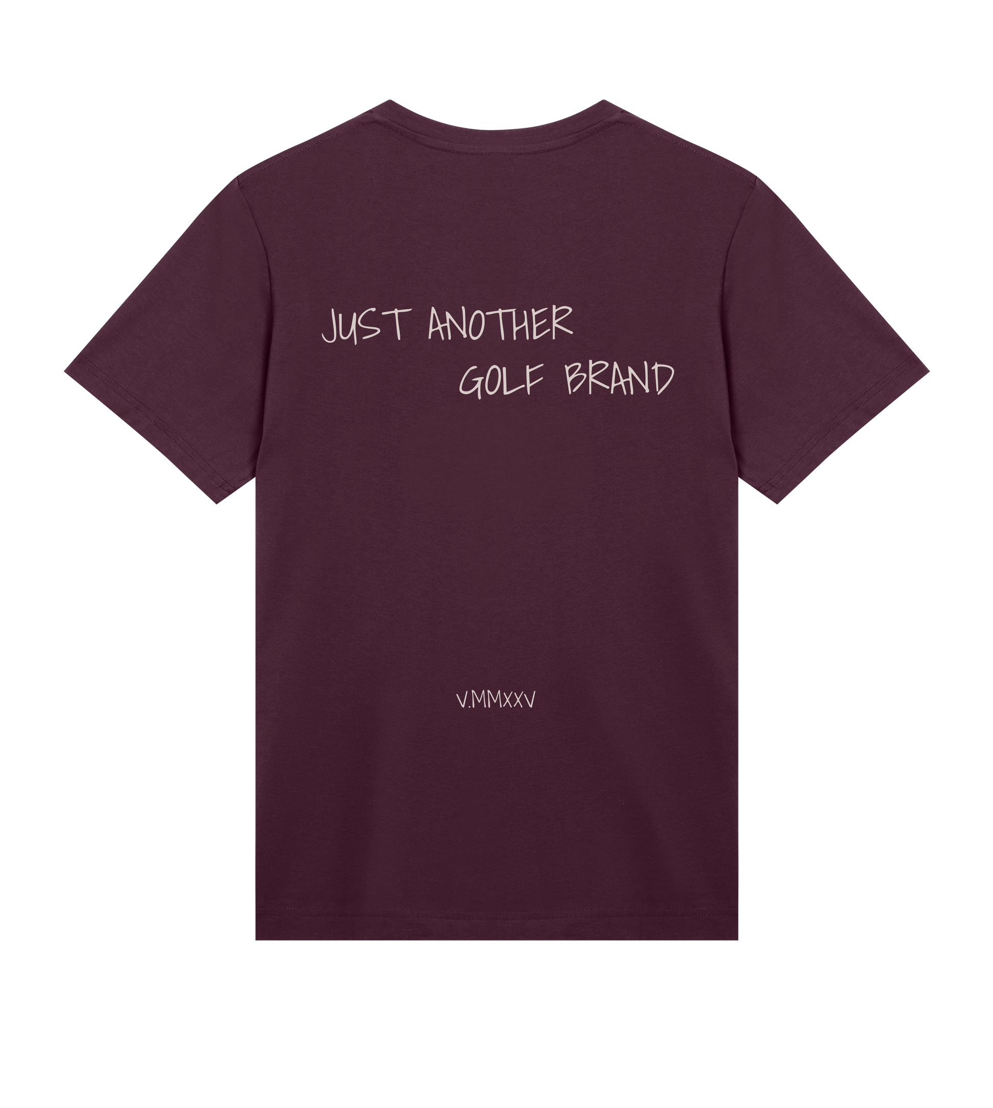 - Distinctive Design: With 'Just Another Golf Brand' written boldly on the back, this tee offers a subtle nod to your style and interests, making it a striking choice for golf enthusiasts and fashion-forward individuals alike.
